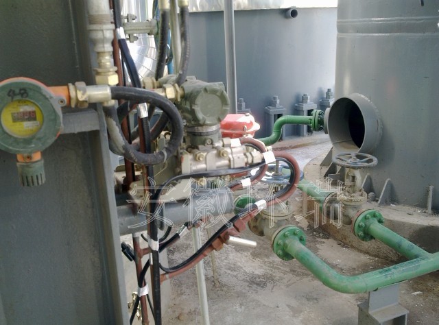 壓力變送器液位計常應(yīng)氣候溫度過低,造成堵塞現(xiàn)象,需要電伴熱防凍,渝豐化工要求其冬季維持溫度為5--10℃,并且要求電伴熱帶具有防爆防腐功能。安徽環(huán)瑞提供ZRDHR-PF46滿足客戶對使用場合及維持溫度要求,其最高表面溫度為70℃,耐溫可達(dá)200℃。可保證維持溫度的情況下,不會出現(xiàn)溫度過高的情況,更加經(jīng)濟安全,而針對現(xiàn)場細(xì)長狹窄的地方自限溫電熱帶可實現(xiàn)交叉纏繞,解決局部伴熱的問題。以下為現(xiàn)場施工安裝圖:
