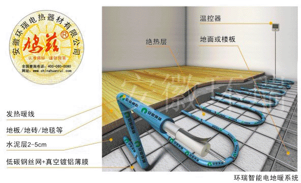 電地暖利用發(fā)熱電纜轉化為熱能,通過地表傳熱由下之上的地面輻射供暖系統(tǒng) 安徽環(huán)瑞電地暖廠家銷售電話:0551-67776888,傾力十年打造中國安全型電地暖品牌