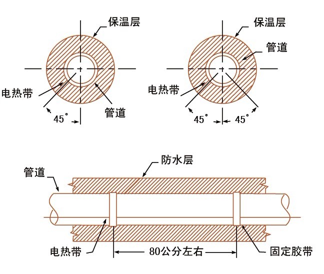 保溫層施工時應避免損傷電熱帶。