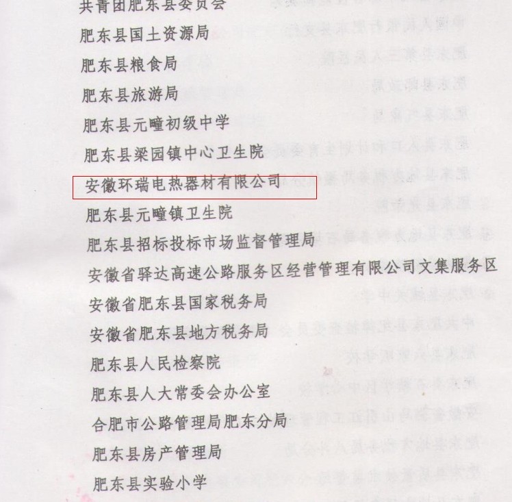 安徽環(huán)瑞電熱器材有限公司有幸成為其中的一員,我們將再接再厲,發(fā)揚(yáng)成績(jī),為推進(jìn)社會(huì)主義物資文明,政治文明,精神文明和生態(tài)文明建設(shè),構(gòu)建和諧社會(huì)的偉大實(shí)踐中更好的發(fā)揮示范帶頭作用。做出新的更大的貢獻(xiàn)。提供思想保障,精神動(dòng)力和智力支持。