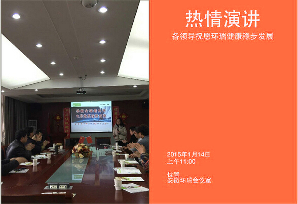 2015年1月14日新年伊始,環(huán)瑞迎來了新疆烏蘇市相關領導蒞臨考察,烏蘇市相關領導在環(huán)瑞董事長計成志陪同下參觀了環(huán)瑞電伴熱帶、發(fā)熱地席和環(huán)瑞現(xiàn)代化展廳,并在環(huán)瑞會議時聽取環(huán)瑞員工對環(huán)瑞未來發(fā)展的相關介紹。